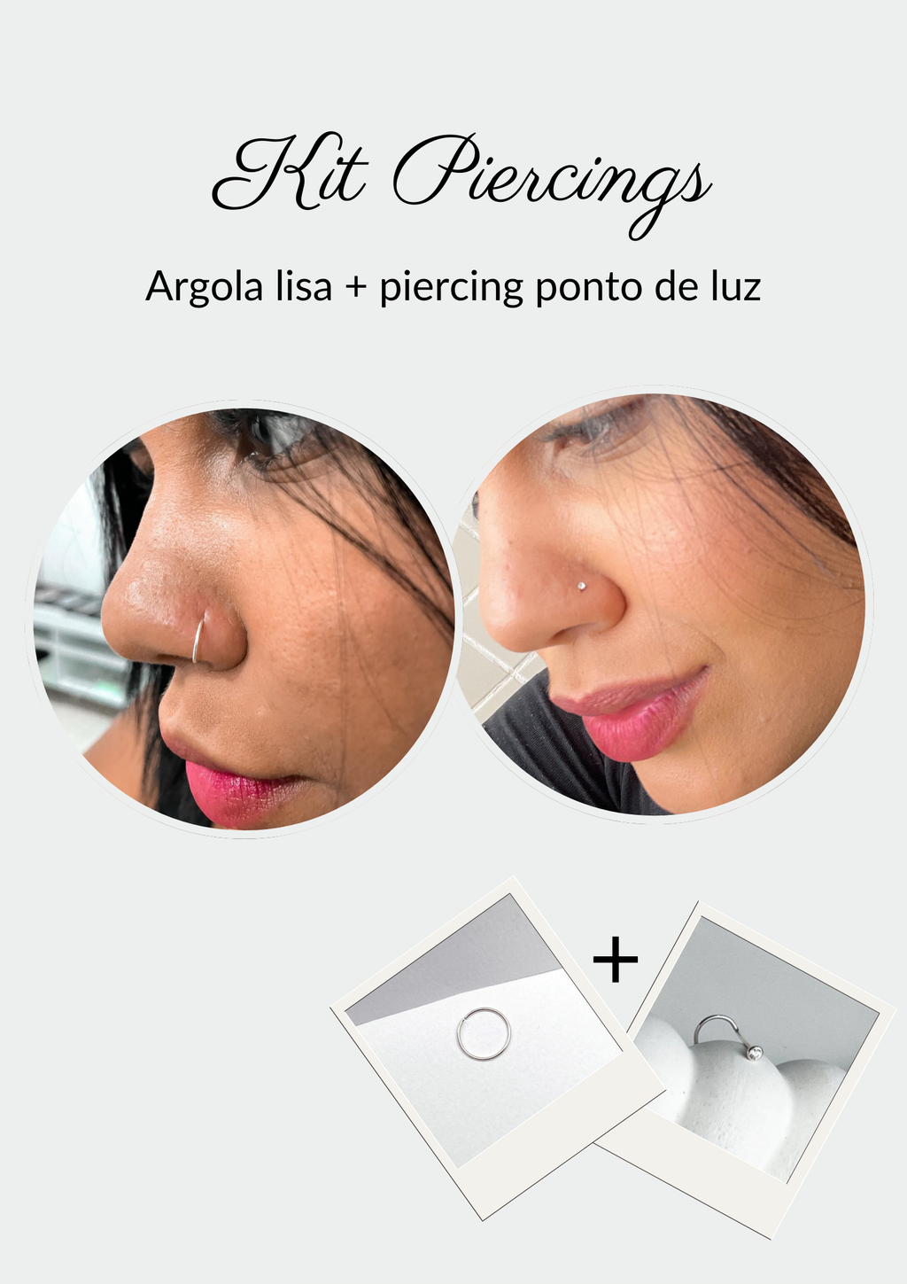 Kit Piercing argola lisa tradicional e piercing ponto de luz